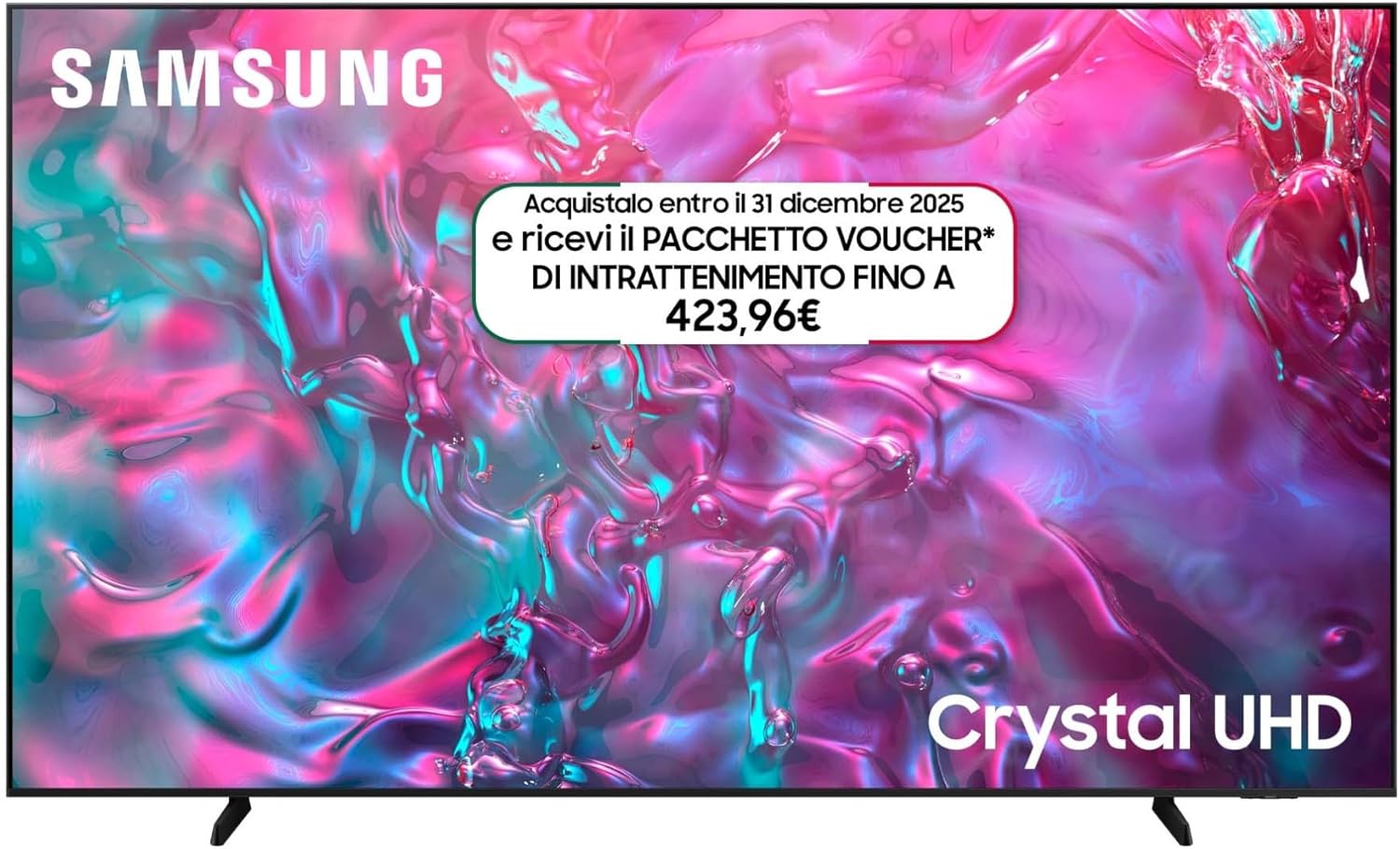 Samsung Smart TV 98 pollici UE98DU9070UXZT, Crystal UHD 4K, Motion Xcelerator 120Hz, Airslim Design, DVBT-2, Q-Symphony e Adaptive Sound, Integrato con Bixby, comp con Alexa e Google Assistant, Black 2024