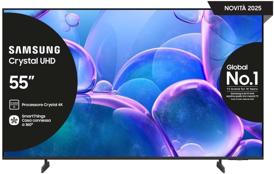 Samsung Crystal UHD 4K Smart TV 55 pollici UE55U7000FUXZT, Crystal 4K Processor, HDR, Smart Experience, OTS Lite e Adaptive Sound, Metal Stream Design, 2025